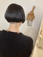 可愛いミニボブスタイルですがえりあしは個性的に刈り上げをしてます!えりあしの癖が気になるかた、ボリュームが気になるかた、おすすめです!そして自然なブラックで染めました!モードな雰囲気がお好きなかたに!