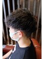 サイドはツーブロック後ろも収まる程度にツーブロックを軽く入れてます。ツイストパーマは本来かなりのハードパーマですがねじり(ツイスト)具合で細かい微調整が出来るので、パーマのクルクル感が苦手な方にオススメです!