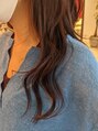 全体的にピンクベースのブラウンで艶髪に。インナーカラーには濃いラズベリーをオン