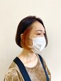 インナーカラーにオレンジベージュを入れたスタイル。トップのカラーは暗めなので、コントラスト際立ちます。