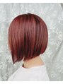レッドブラウン 前下がりボブ