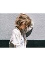 大きめニュアンスウェーブのボブスタイル。薄めの前髪で抜け感を。毛量が多い方も透明感のあるカラー、アッシュベージュを合わせることで軽やかな印象にしてくれます。