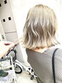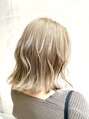 ハイトーンベースにミディアムでゆるふわに巻いたスタイル