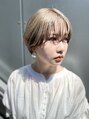 大人かわいい前下がりのマッシュショートはシャープに切ったライン、襟足をしめてスッキリ見せたりと、メリハリを効かせて絶妙なバランスに!カラーはブリーチ後に ヘーゼルベージュで透明感、質感をプラスして大人見えに!イメチェン楽しみませんか?