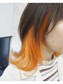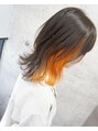 ダークブラウン×インナーオレンジのミディアムウルフ
