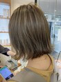 量が多くてもまとまるマッシュショート細かいハイライトを沢山入れる事で透明感が出ます◎デザインカラーはお一人お一人に合わせて変えています!