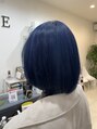 ブリーチを使用してオンカラーをネイビーブルーにしました♪青系のカラーリングはブリーチワークが大切になります☆髪質によっては2回以上必要な場合がございます。色味をしっかり入れてあげても可愛いです(^ ^)
