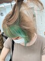 【気に入ったスタイルは『ブックマークする』ボタンを押してご来店時お見せください】ブリーチは2回がおすすめ♪全体ブリーチで、インナーカラーで作る【ホワイトベージュ × サワーグリーン】原宿/表参道/明治神宮前/髪質改善/イルミナカラー/ブリーチなし