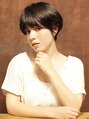 柔らかく丸みを帯びたショートヘアです。襟足はタイトにカットし、後頭部とのメリハリをつけ綺麗なフォルムに仕上げます。ストレートですがカットで柔らかさを出しています。