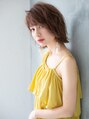 アゴラインでカットしたボブ。少し前上がりでカットしているので横からみたラインもシャープですきりとした印象になります。毛先には軽さをだしつつ、カールで動きをつけているので、ふんわりとエレガントなカジュアルさに☆