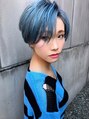 襟足を長め刈り上げたショートスタイル。ボリュームと束感を出しやすくカットしています。カラーでブルーのハイライトでよりスタイリッシュな印象に。ブリーチは2回必要です。
