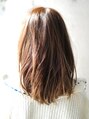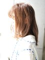 ミディアムレングスのボブスタイルに顔まわりレイヤーを入れてます。毛先からウェーブが出るようにしっかり巻いてパーマをかける。カラーは10トーンのシルキーベージュ