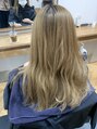 ブリーチベースにペールトーンのラベンダーベージュをオンカラー。黄みを消して柔らかく。