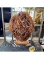 生え際は浮きやすいので抑えてパーマをかけました。シースルーバンクで縦長効果◎傷みがあるところは切って、トップはしっかりカールを出して、セルフスタイリングしやすくしました。切り込みすぎず、ひし形シルエットで女性らしさも忘れずに◎