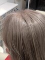 カットはロブ。カラーはブリーチ2~3回のベースにホワイトベージュをオンカラー。