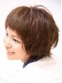 おもいっきり切り込んだ前髪がとってもキュートなショートボブ。立体感を出すために、細かく切り込んだドライカットに大き目のふんわりカールでかわいさMAX!カラーはロイヤルアッシュで軽さをプラス!!