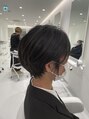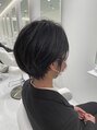 毛先に軽さのあるショートスタイルです。全体の重さを中間にもってくることで、毛先にかけて動きのある軽さを出しました。重めのヘアスタイルに飽きて来たお客様にオススメのスタイルです。