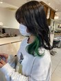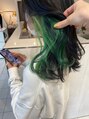 黄色がたっぷり入ったターコイズカラー☆肌色とも合わせながら調合してます♪カラートリートメントで発色も良くオススメです◎