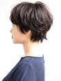 ショートマッシュのウェーブスタイルです。コールドパーマ動きで重ならない強めにランダムな毛流れをつくっています。内巻きと外巻きを繰り返して巻いてラフさを出しています。動きが出るよう全体はレイヤーの幅を広げて軽いスタイルに。