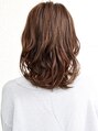 ミディアムレングスのウェーブスタイルです。前髪はシースルーににカット。デジタルパーマをかけ、重ならない強めにランダムな毛流れをつくっています。内巻きと外巻きを繰り返して巻いてラフさを出しています。