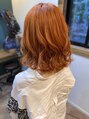 肩ラインのロブ。ブリーチダブルカラー。オレンジカラー。