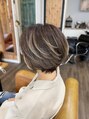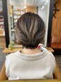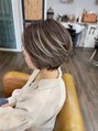 ダブルカラーはお任せください!カットはかきあげマッシュショートをベース♪バレイヤージュでしっかり脱色してからモノトーン、グレー、ラベンダーをバランス良くmixしたカラーをON☆立体感のあるヘアカラーです^ ^