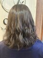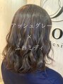 季節を問わず人気のアッシュグレー。今回はくすみ感をしっかり出すためにネイビーとグレーを混ぜて透明感のあるくすみカラーにしました。鎖骨下のミディアムヘアは外ハネベースで動きをつける事でふわっとした大人女子の魅力を引き立たせてくれます!