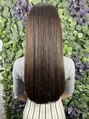 胸下、腰くらいのロングヘア。ソギは入れずに艶感と収まりを重視してます♪カラーはベースのカラーは8トーンのピンク系のウォームブラウンで染めて、暗めのローライトを入れて陰影をつけ、毛流れと艶がキレイに出るようにしてます。