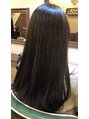 やわらかなロングのストレートスタイル。重めバランスにナチュラルなアッシュカラーで軽さをイン。