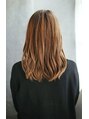 透け感のあるバングにセミウエットの質感のミックスカールスタイルです。顔まわりから落ちるカールは輪郭を補正し女性に人気のスタイルです。