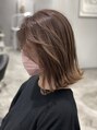 透明感あるエアータッチバレイヤージュに!筋感を作り、ナチュラルグラデーションにしてます。カラーはミルクティーベージュで透け感アップ!カットはボブスタイルをワンカール外ハネにしております。