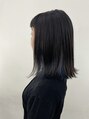 インナーダブルカラーでネイビーカラーをオン。インナーが映えるように全体は黒で、ミディアムヘアを楽しめるスタイル。