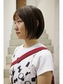 ぱつっとカットラインを残したスタイルは、カラーで透け感あるスタイルに^^