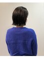 ダークグレーに切りっぱなしボブ。外ハネにスタイリングしてバームでつやっと。