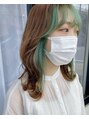 顔まわりのフェイスフレーミングカラーにミントグリーンを入れました茶色や黒髪との相性もいいので個性的な雰囲気オシャレカラー!