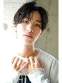 アウトライン短めのツーセクションセンターパートショート。重軽な質感にニュアンスパーマで柔らかく軽やかに!肩の力の抜けたスタイルでシティボーイ感を