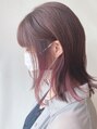 インナーに入れたくすみピンクがアクセントのミディアムヘア。落ち着いたピンクは取り入れやすく、どなたにもお似合いになりやすいカラーです。