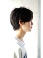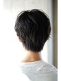 前下がりのハンサムショートベース。あえて刈り上げない、少し重めと主張の強すぎなさがシティボーイ感を!スパイラルミックスパーマで柔らかくくせ毛のようにすることで肩の力の抜け感を強める。
