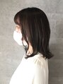 アッシュベージュにグレーをミックスして、くすみカラーに。全体的にハイライトが入っているので、立体感のある仕上がりになっています♪鎖骨ラインのボブスタイルは、外ハネも内巻きも作りやすく、アレンジしやすいのでオススメですよ。