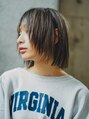 前上がりの切りっぱなしボブ。ブリーチオンカラーで外国人風に。