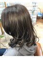 マグネットカラー、シャンプーブロー。グレー多め配合のダブルグレージュ。5ヶ月前に入れたハイライトも健在。