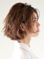外国人風のクセ毛ボブ。細めのロッドで毛先を逃してランダムにかけたニュアンスパーマが効いた、大人に似合うスタイルです。毛先にはスライドカットで動きと抜け感を出しています。