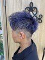ネイビーブルーにシルバーのメッシュをいれた、遊び心のあるスタイル