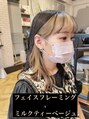 顔周りをダブルカラーで明るくしてミルクティーベージュにカラーしています。全体は抵抗がある方や、根元が伸びるのが気になる方にもオススメです。