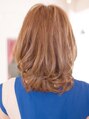 似合わせ小顔カット。顔周りのリバースカールがミディアムの長さでも華やかに表現!リバースカールとひし形シルエットで大人っぽい雰囲気と、厚めバングの可愛らしさがミックスされている良いところ取りのスタイルと言えます。