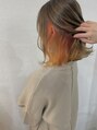 ベージュ+インナーオレンジ!表面は明るめベージュでインナーは広範囲でブリーチをし、オレンジを入れてあります!