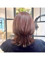 アルティストカラーでピンクベージュに染めて秋冬カラーにチェンジ♪元々入れてあったハイライトの上から被せて陰影をつけています。内巻きも外ハネもできるウルフスタイル◎伸ばしかけの方にもおすすめです。
