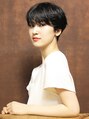 クセ毛のようなパーマをかけカジュアルショートヘア。クールになりすぎないように毛先を遊ばせ、後頭部に丸みをつけて女性らしさもプラス。襟足はタイトにしつつ毛先の柔らかさも残して首元を綺麗に見せます。