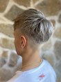 フェード風刈り上げスタイル。ブリーチ2回のハイトーン。カラーはシルバーベージュ