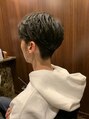 周りは自然に刈り上げて前髪は少し上げやすいようにしつつ後ろに流れる様にパーマをかけました!耳周りは事前にスッキリするように切り目の横に髪がある事で小顔効果!!最近流行りのセンターパートのニュアンスパーマ!!
